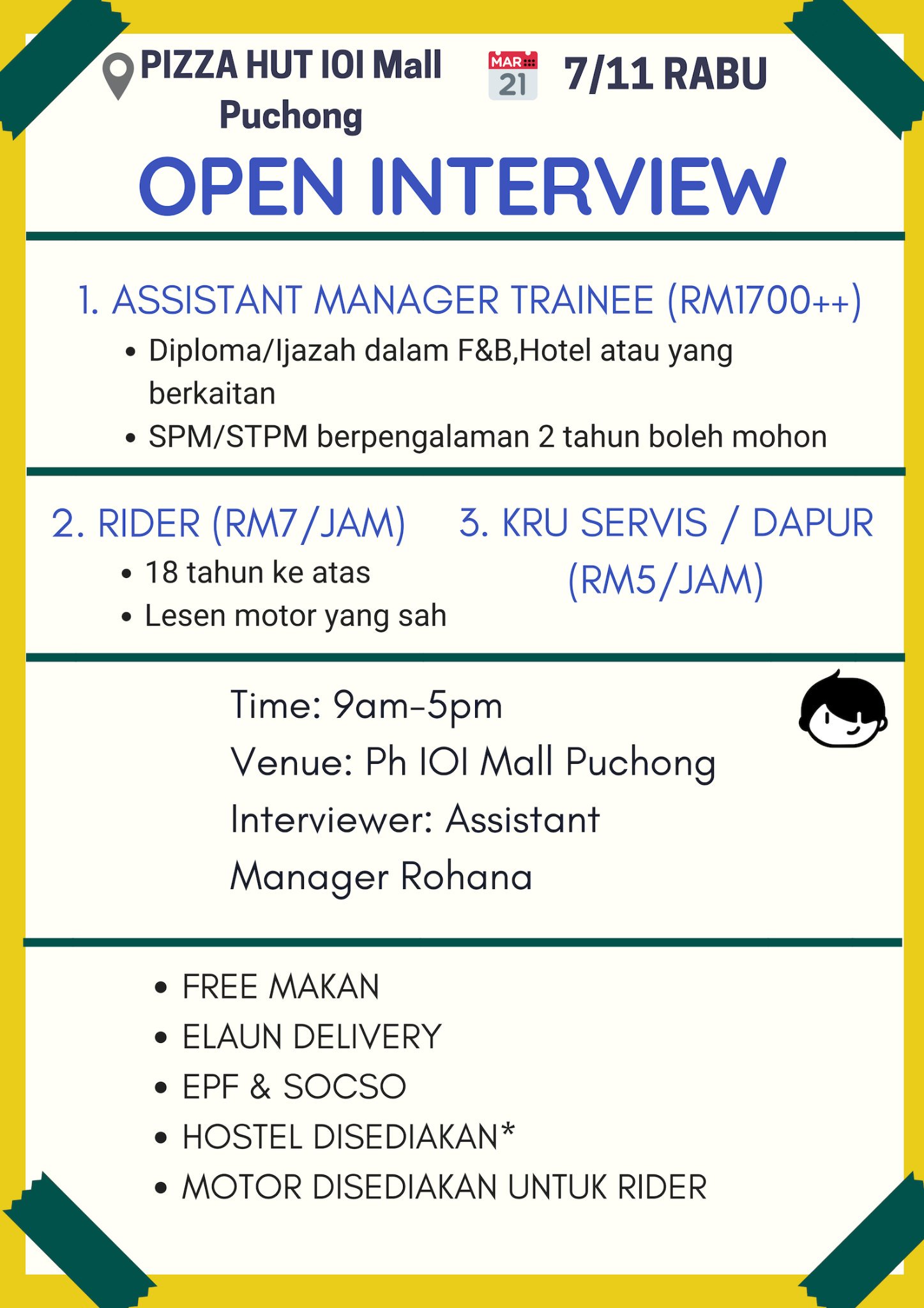 Twitter 上的 Maukerja Morning Warga Puchong Jom Ramai Ramai Ke Open Interview Hari Ni Di Pizza Hut Ioi Mall Puchong Bermula Pagi Ni Sehingga 5 Petang Bawa Ic Dan Sijil Spm Diploma Degree Jawatan Kosong